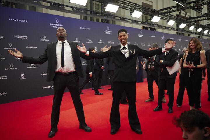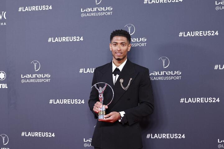 Just a night after his stoppage time strike won El Clasico, England ace Bellingham was lifting the Breakthrough prize at the Laureus World Sports Awards.