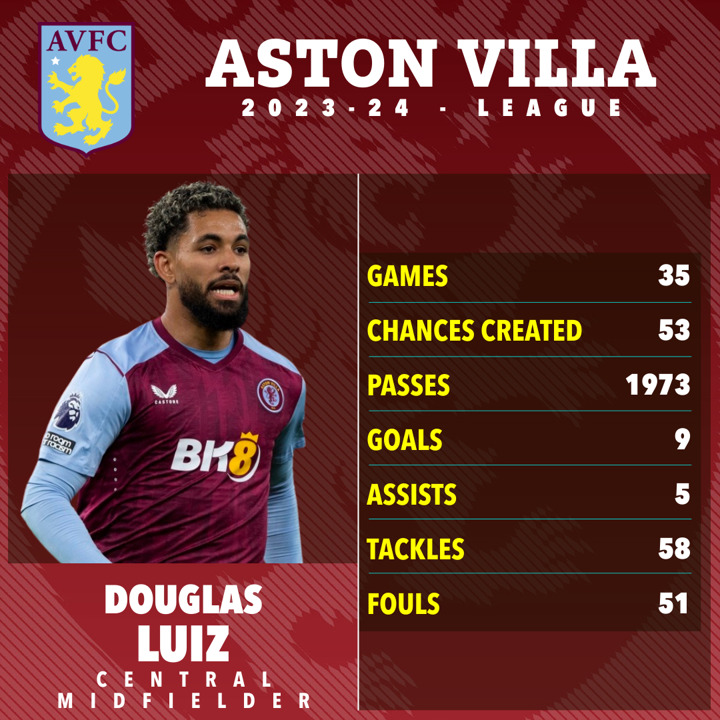 Villa signed Luiz from Manchester City in 2019, with the 26-year-old making 35 Premier League appearances last season.