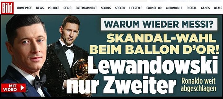 German media fumed at the decision to award Lionel Messi his seventh Ballon d'Or, describing the verdict as a 'scandal' that 'cheated' Bayern Munich star Robert Lewandowski.
