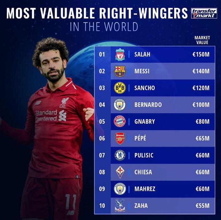 More expensive than Messi! Salah is the most valuable right winger in the world