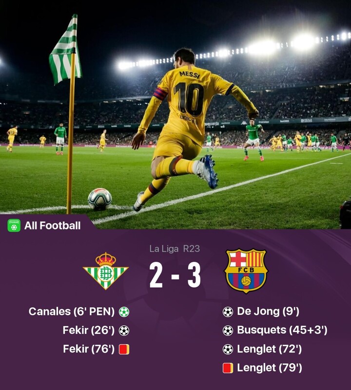 Betis 2-3 Barca: Messi assist hat-trick saves the day, Lenglet & Fekir sent off