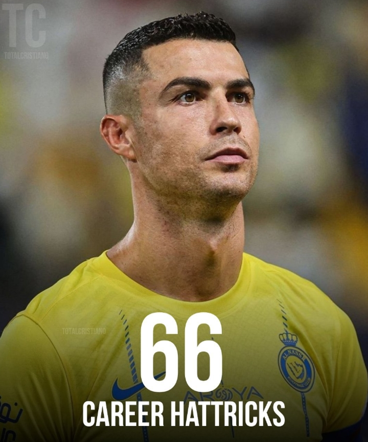 39-year-old Cristiano Ronaldo has scored his 66th career hat-trick
