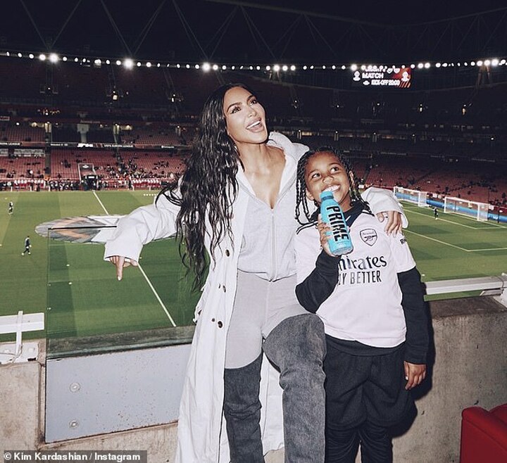 Keen to feed Saint's passion for football, Kim took her son and some of his friends to watch an Arsenal match at Emirates Stadium in March.