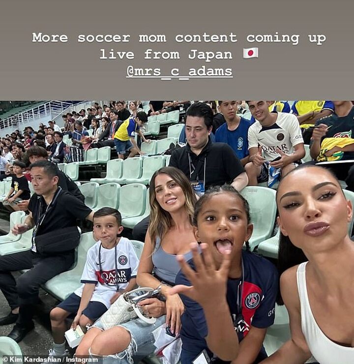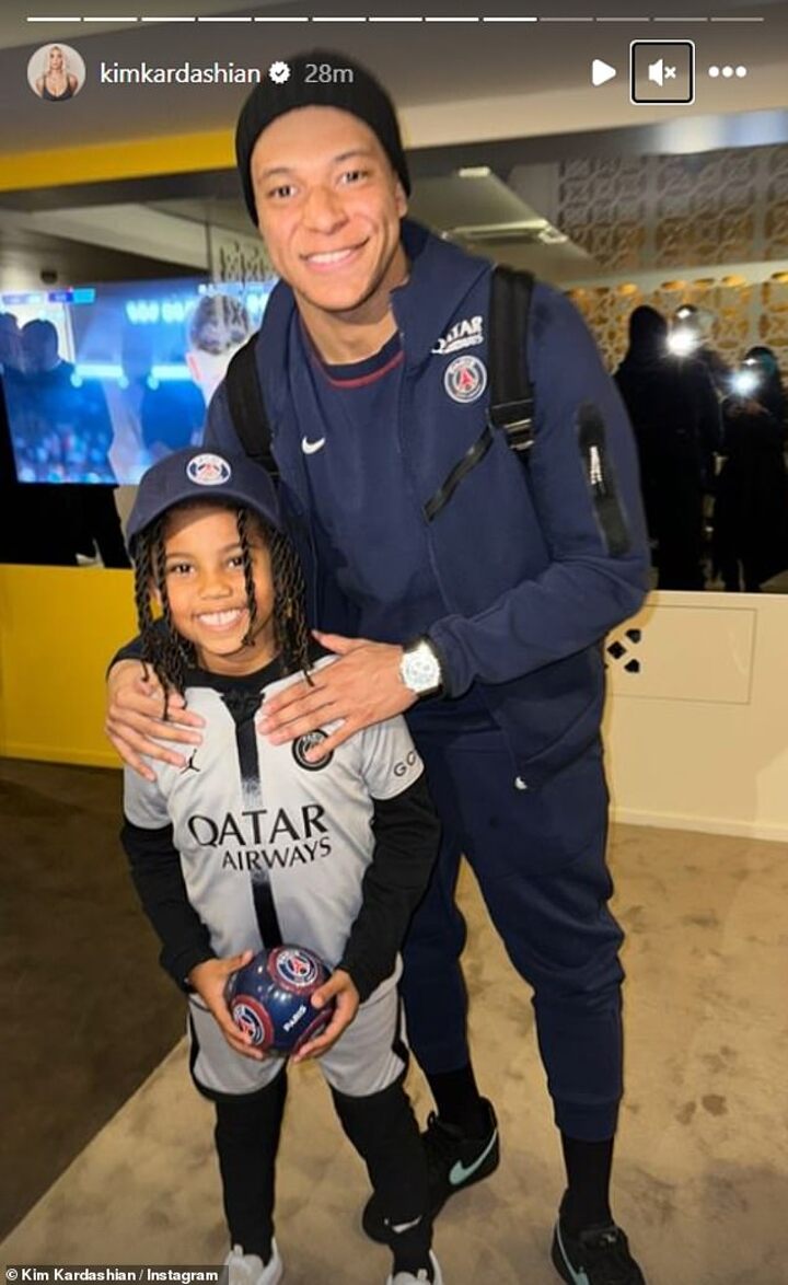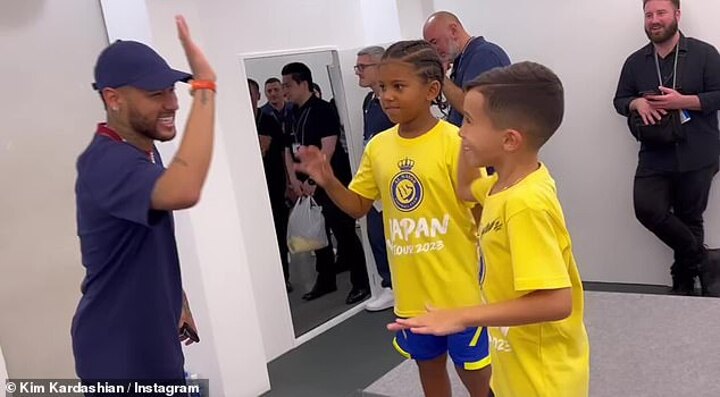 In July, she snapped photos partying alongside Mbappe, before taking Saint to meet Neymar and Ronaldo after the PSG vs Al-Nassr match at the Nagai Stadium.