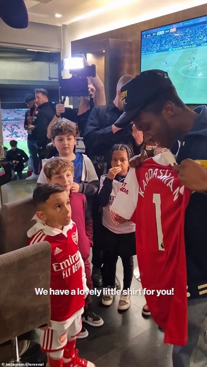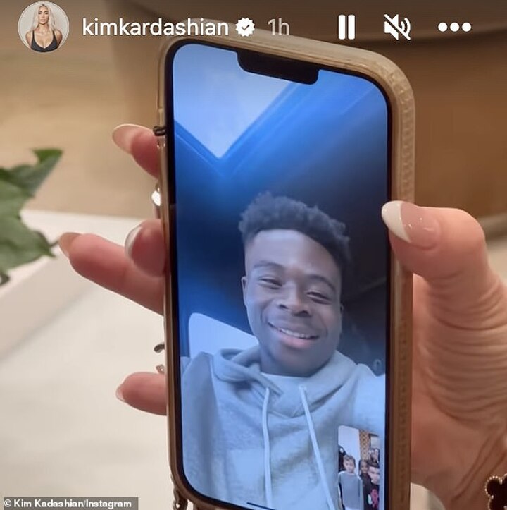 Kim earned some serious mum points as she then managed to get her son on a FaceTime call with the Arsenal forward.