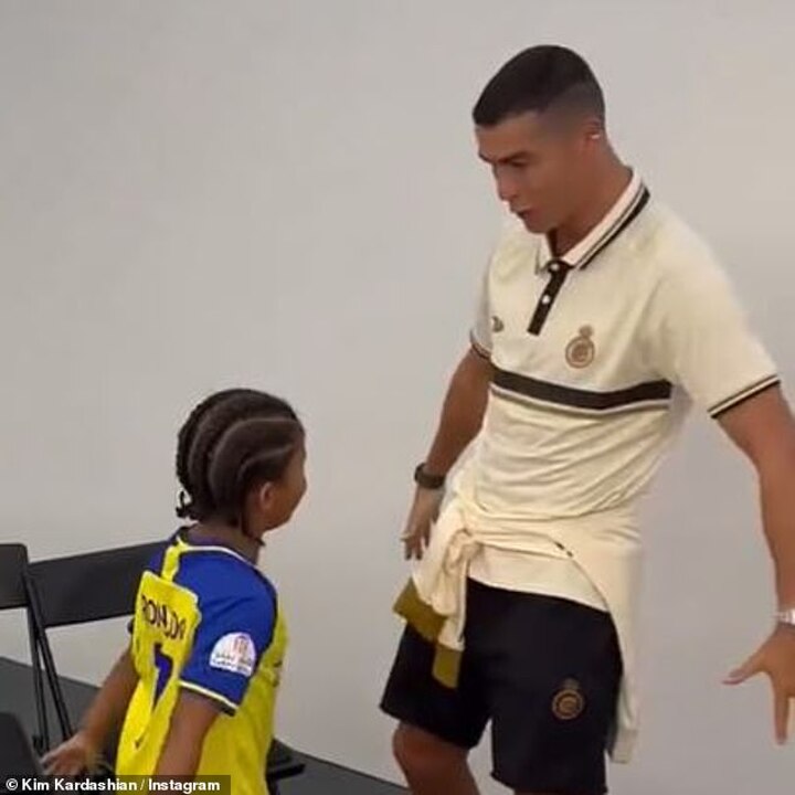 Saint had both of his jerseys signed by both legendary players and Kim shared two heartwarming videos of Neymar teaching her son a special dance and of Ronaldo recreating his iconic 'siuuu' celebration with Saint.