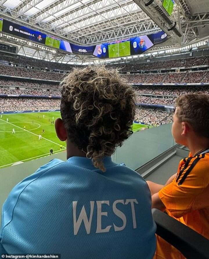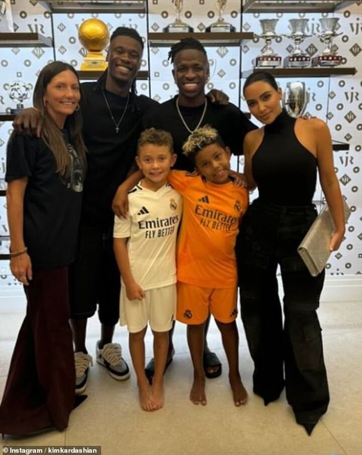 Saint, a noted soccer fan, and his mom got to meet several Madrid players (including Vinicius) a day prior as they also posed with Eduardo Camavinga and Jude Bellingham - who has modeled for Kardashian's Skims brand.