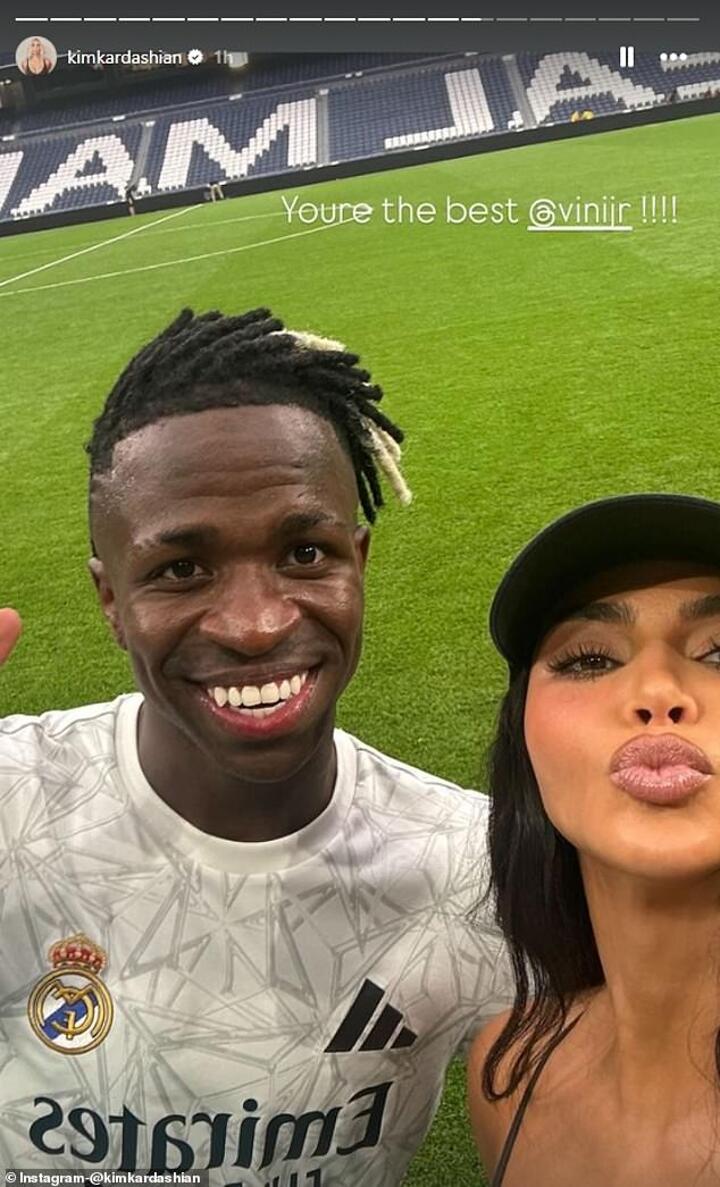 Vinicius later posted a photo of him in Saint in an Instagram carousel, and later captioned a picture of the two 'My friend' after Kardashian had posted it to her story and tagged the soccer star.
