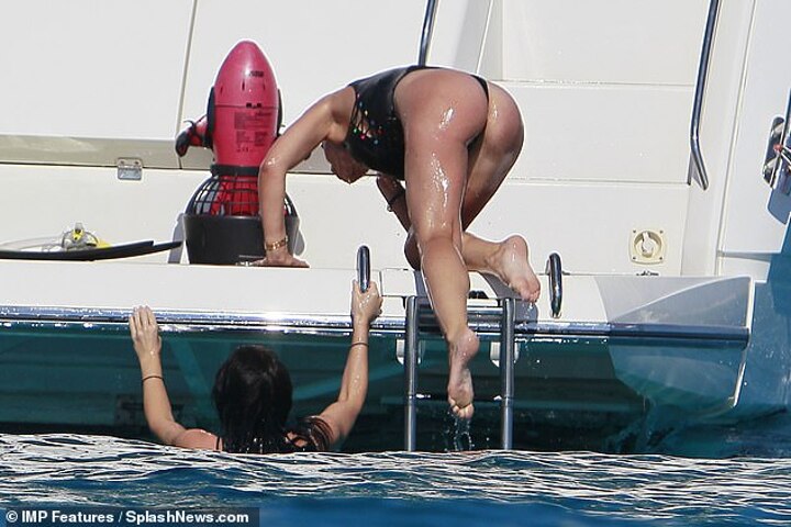 Peachy: Annie flashed her pert posterior as she climbed back onboard