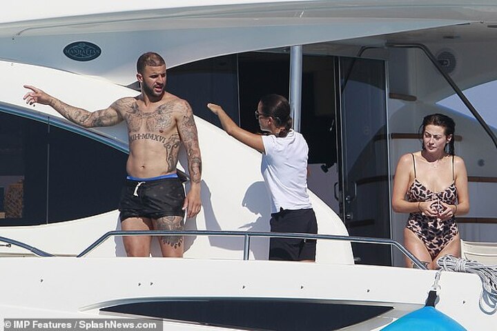 The Manchester City footballer, 29, and his partner of nine years, Annie Kilner looked gleeful as they soaked up the sun on a yacht in Formentera, with the sportsman cracking up with laughter as he looked at his phone.