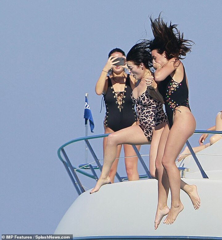 Wow: Annie and a friend were watched by Kyle as they jumped overboard