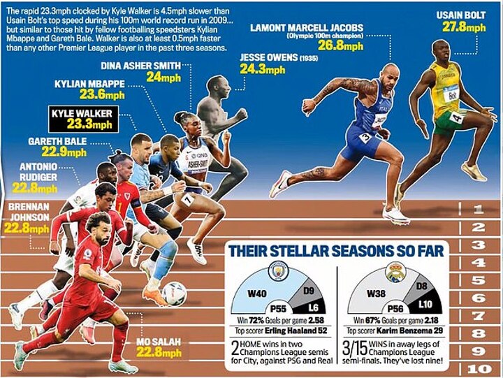 Walker will face another speedster in Vinicius Jnr when the two are reacquainted on Wednesday night in the second leg of Manchester City's Champions League semi-clash with Real Madrid.