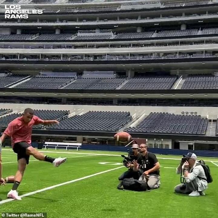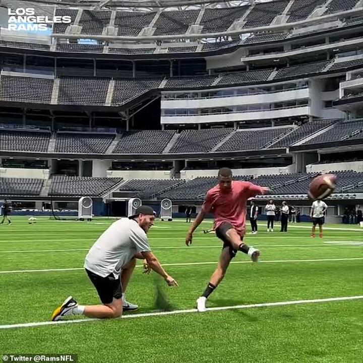 Mbappe, who is spending his summer break Stateside, was filmed kicking field goals at the LA Rams' SoFi stadium in Los Angeles.
