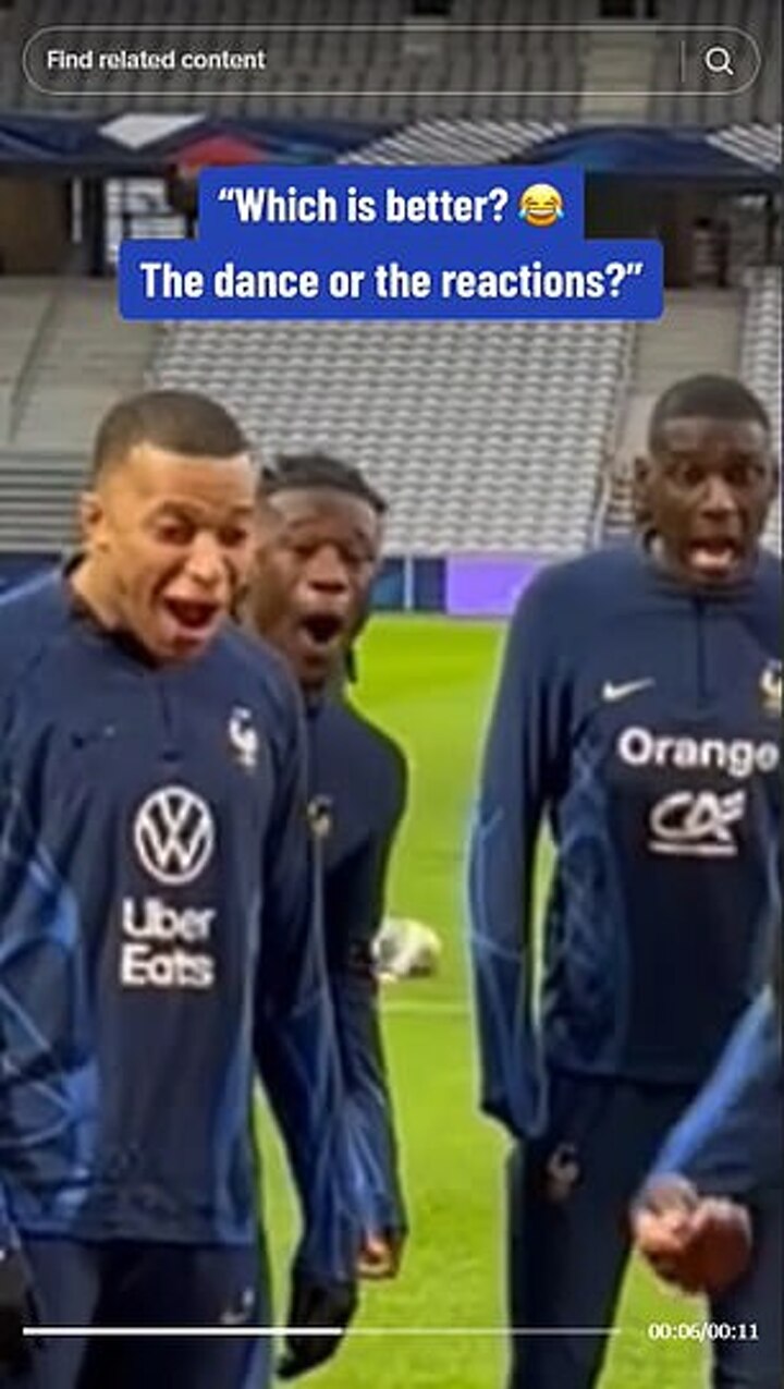 In a clip that was shared onto the French national team's official TikTok account, Mbappe appeared far from focused during a recent training session.