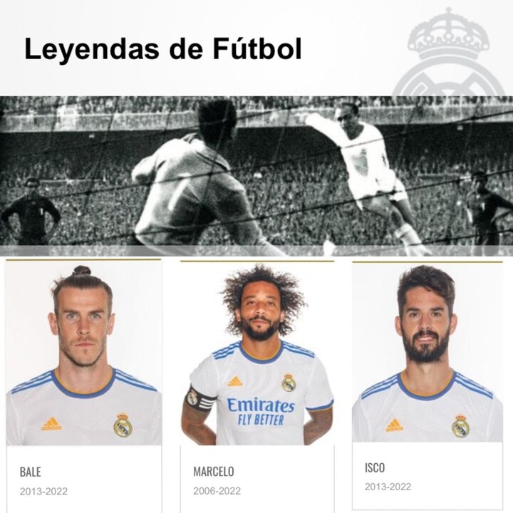 All three have been added to the Leyendas de Fútbol (Football Legends) section of the club's website, where they are now listed among other greats of the Merengues such as Di Stéfano, Raúl, Zidane and others.