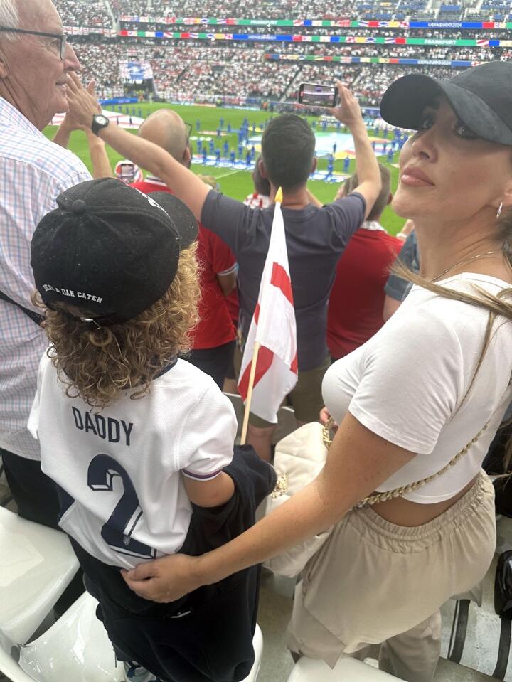 Kairo wore a Three Lions shirt with "Daddy" and the number two on the back as the boy waved an England flag as he cheered on the Three Lions.