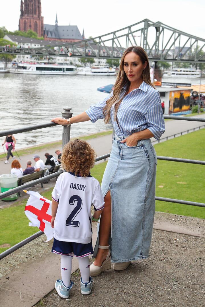 The 33-year-old influencer and reality TV star took the four-year-old to Frankfurt to watch his vice-captain father play against Denmark on Thursday.