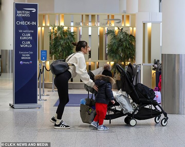 The influencer and TV personality was seen with Kairo and her young daughter - whose name has not been disclosed - at Gatwick ahead of a hasty overseas break.