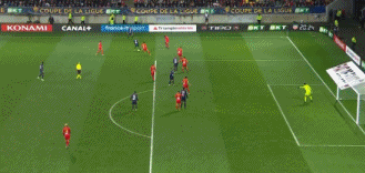 Manzala isn't picked up by the PSG defence as he cuts inside from the right to get on the end of Maziz's pass. He takes a touch to set himself before hitting his shot into the top-right corner from the middle of the box. 4-1!