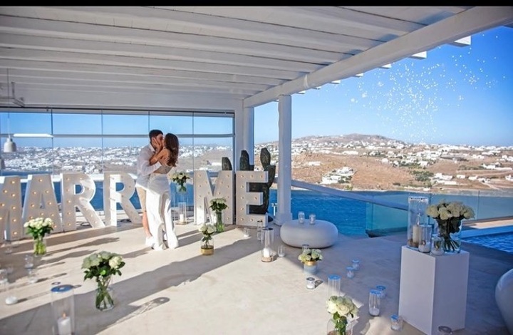 James, 24, whisked his partner of five years to the idyllic Greek island to make the romantic proposal surrounded by the sparkling ocean and hedonistic hilltops.