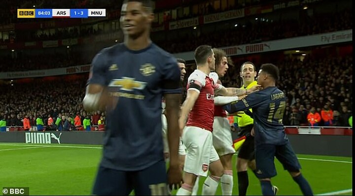Lingard, who was confronted by Arsenal midfielders Granit Xhaka and Matteo Guendouzi, had to be pulled away by his United team-mates.