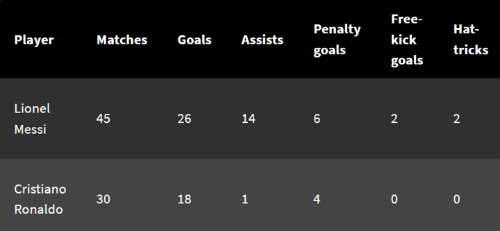 Here, we take a look at the statistical comparison of Messi and Ronaldo in El Clasicos.