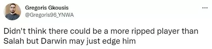 One fan said: 'Didn't think there could be a more ripped player than Salah but Darwin may just edge.