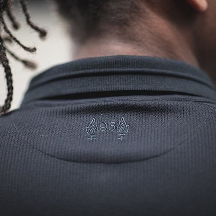 The top includes a stitched '96' on the back of the neck in memory of those who lost their lives in the Hillsborough disaster.