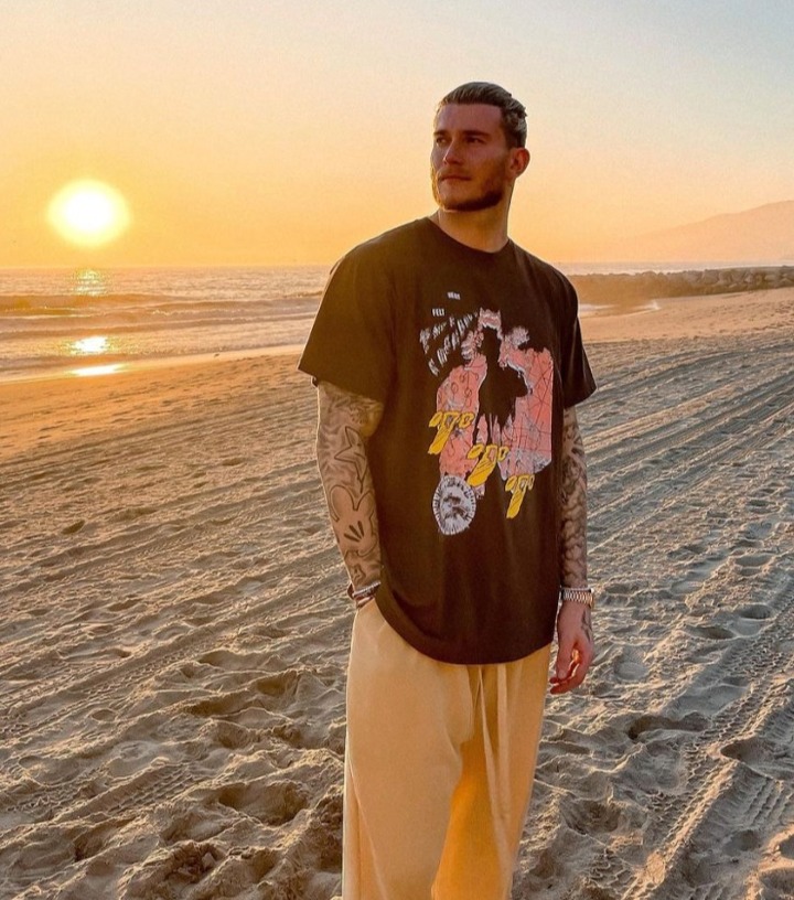On one visit to the beach, with the sunset as his backdrop, Karius was snapped taking in his surroundings.
