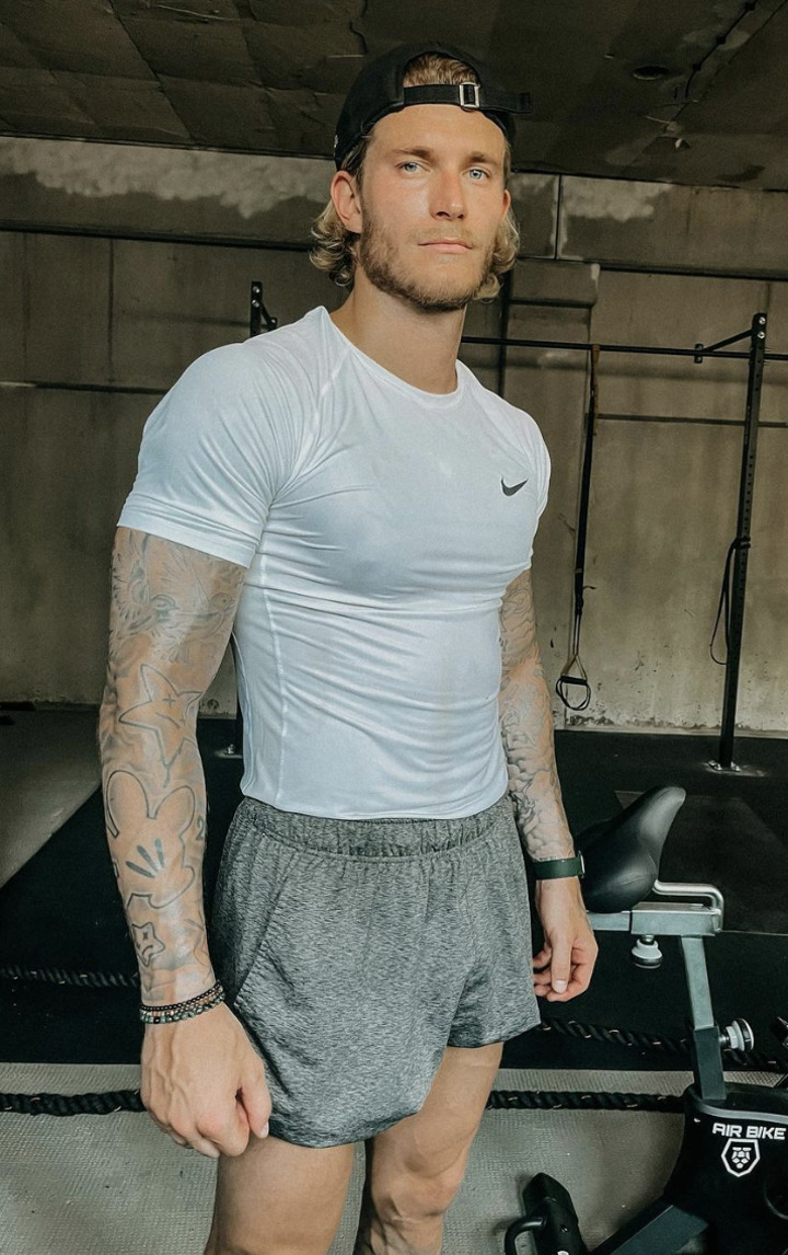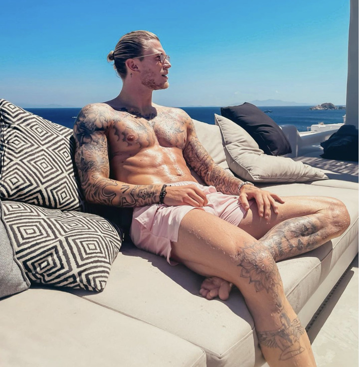 Karius also uploaded a snap tanning his sculpted physique in Greece last year.