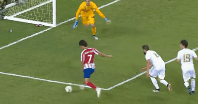 Goal! 0-6! Felix slipped Costa into the penalty area and the Spaniard chipped Navas with the ball landing into an open net for yet another Atleti goal!