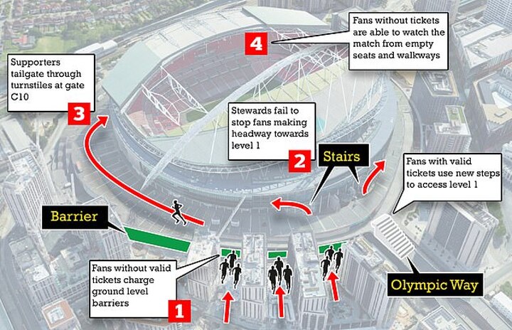 Sportsmail revealed that the families of England stars were forced to escape from ticketless yobs who burst into Wembley ahead of Sunday’s final. They were also the victims of attempted ticket thefts at pick-up points and frenzied queues as they tried to enter the stadium via Gate G.