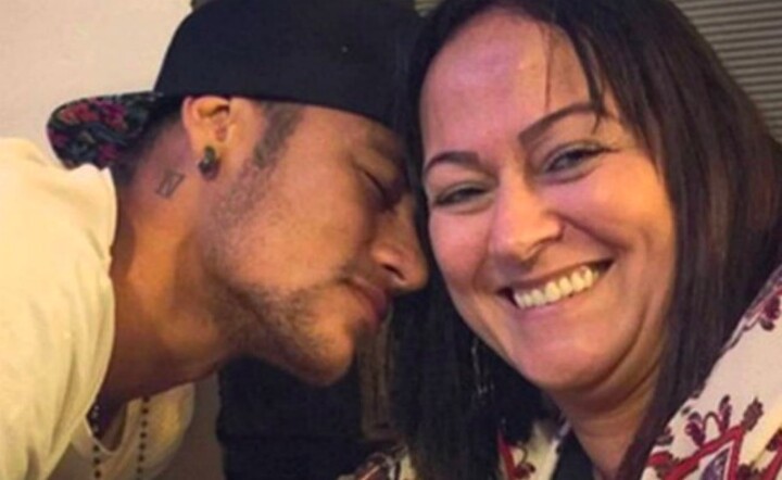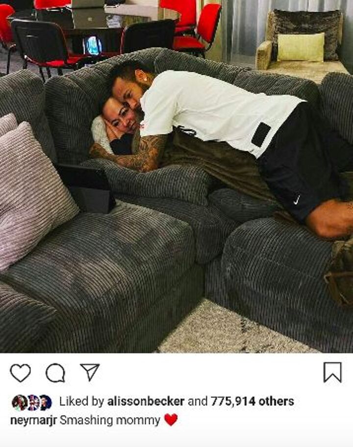 Take a look below as the Brazil international can be seen lying on top of his mother, or "crushing" her, as he puts it in the caption.