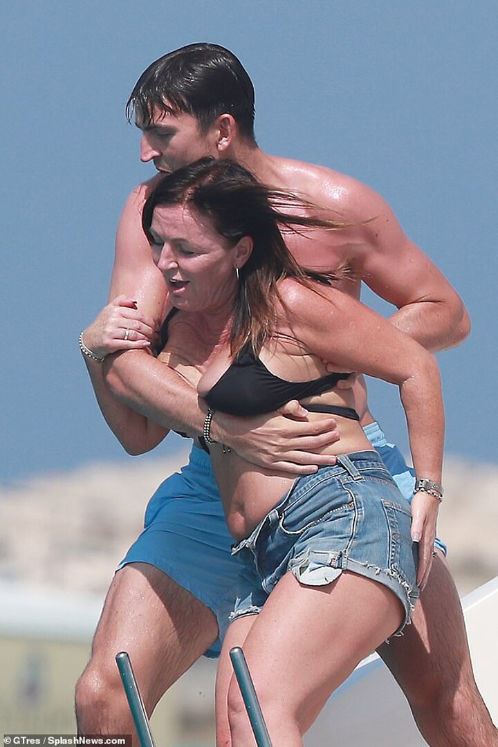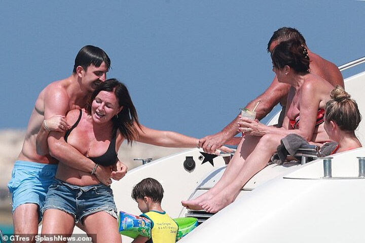 The pro was in good company as he also joined his father Alan on the yacht, who applied SPF lotion to his son's sunburnt back.