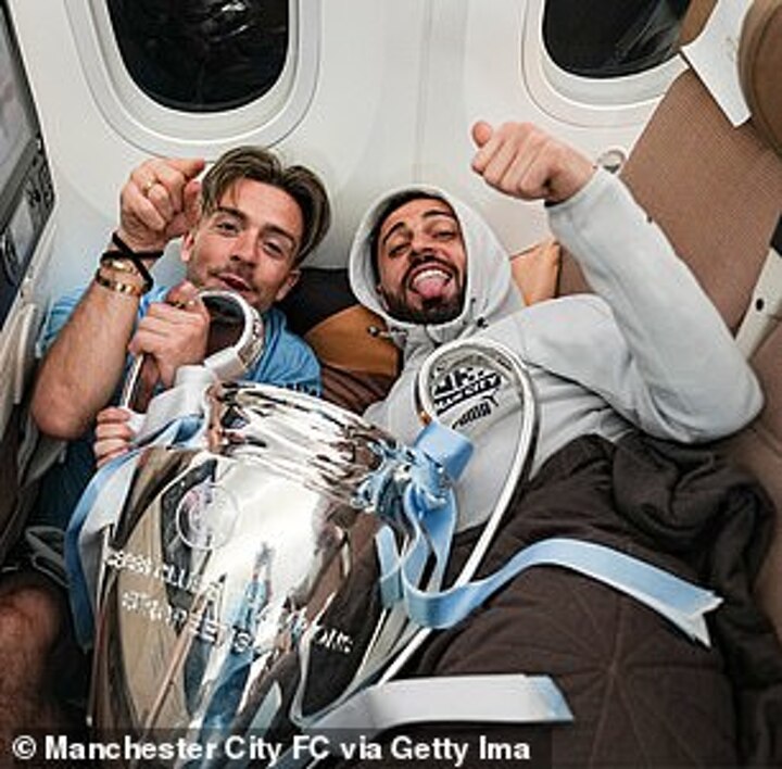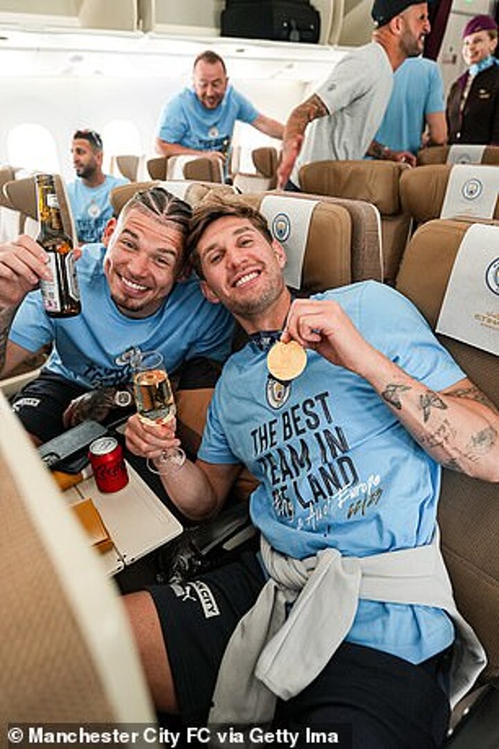City's partying after the victory ran through the night, with Jack Grealish seemingly staying in his kit through the night as he was pictured before flying home the morning after.