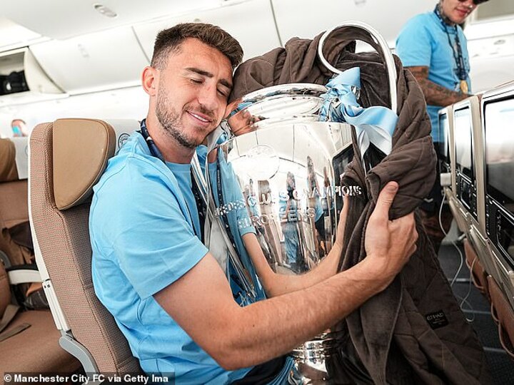 Ayemric Laporte held the Cup close, while Jack Grealish appeared to be the social hub of the group as he celebrated with Erling Haaland, Bernardo Silva and Kevin De Bruyne.