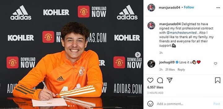 'Delighted to have signed my first professional contract with @manchesterunited,' the teenager wrote on social media.