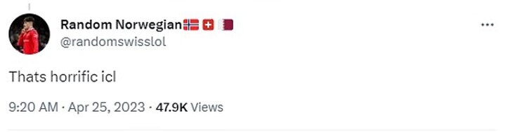 A final person added: 'That's horrific I can't lie.'