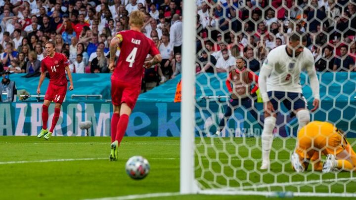 The goal prompted wild celebrations among Denmark's players, fans and coaching staff inside Wembley but it was a particularly satisfying moment for Mads Buttgereit, a set-piece coach working with the Danish national side during the tournament.
