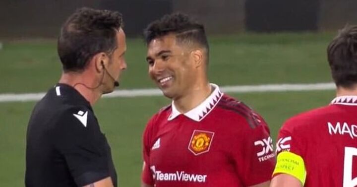 And following the final whistle - with Sevilla reaching the final four of the competition by virtue of a 5-2 aggregate win - Casemiro was seen laughing with the referee despite putting in one of his worst performances since arriving at Old Trafford from Real Madrid for £70m fee last summer.