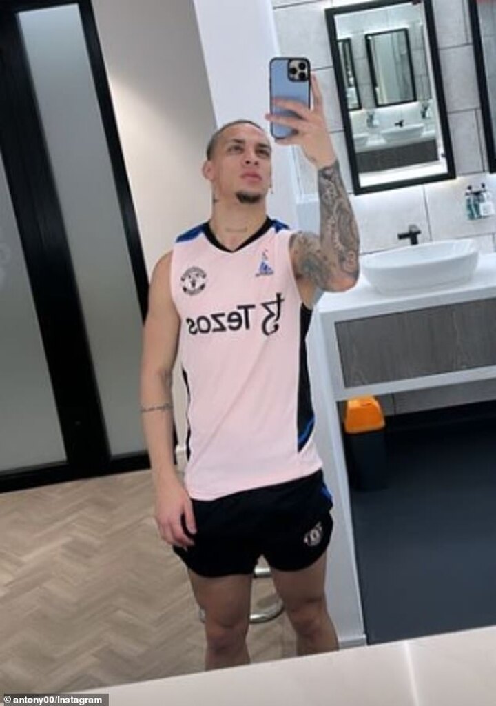 Manchester United star Antony took a selfie on his return to training on Monday after missing the last four games with a leg injury.