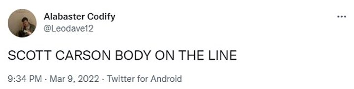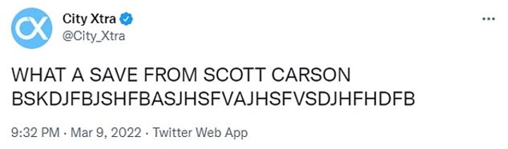 A number of users wrote: 'What a save Scott Carson,' while another commented: 'Scott Carson body on the line.'