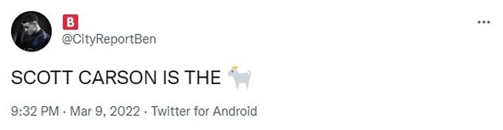 Another fan described him as the greatest of all time, while Jack wrote: 'Gotta love a bit of Scott Carson.'