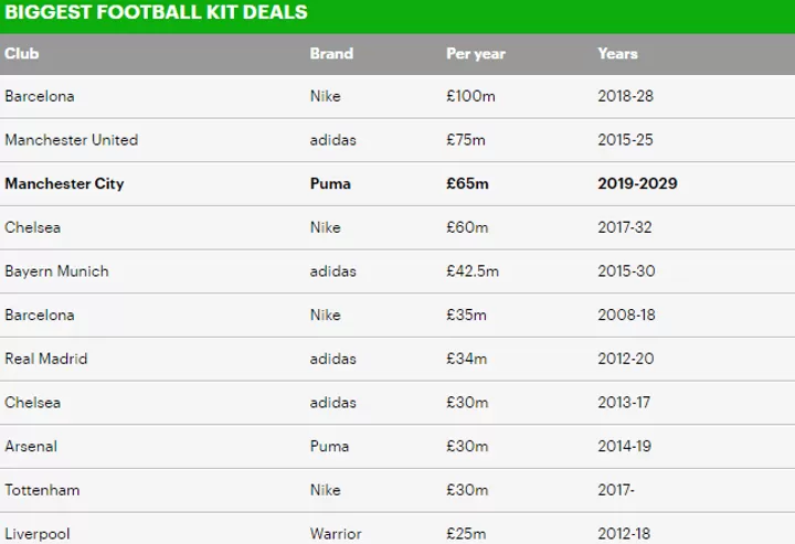 Manchester City have signed a £650million kit deal with Puma, one of the biggest commercial contracts in football history.