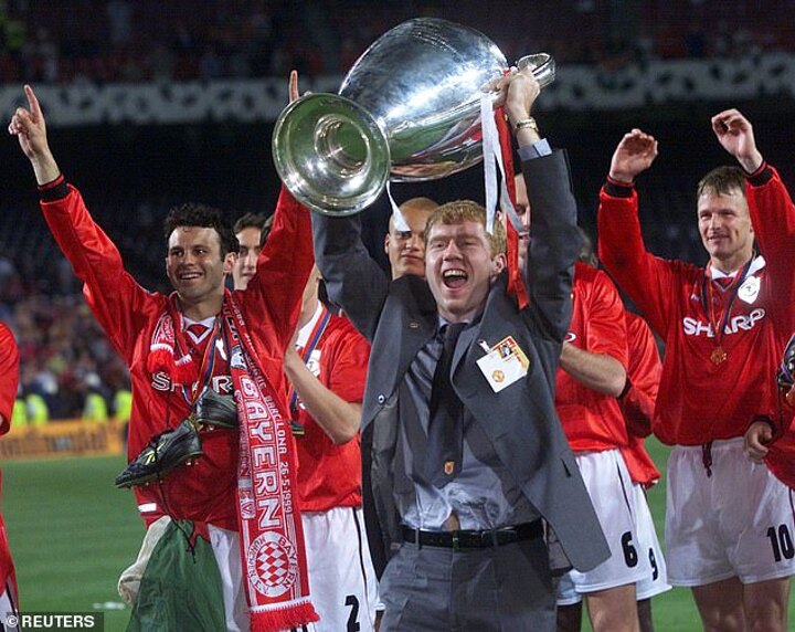 Along with Roy Keane, Scholes wore a club suit and had to watch from the stands at the Nou Camp, before coming on to the pitch at the end to celebrate with team-mates, a moment he does not hold fond memories of.