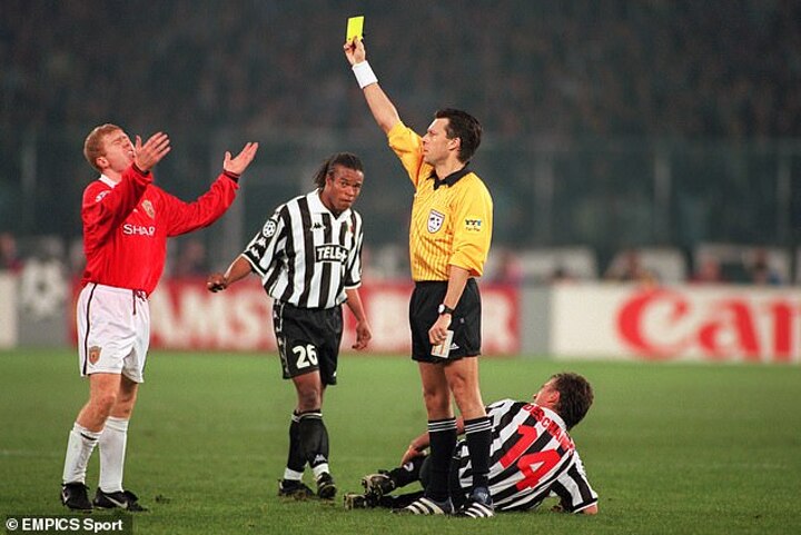 Scholes was booked in the semi-finals against Juventus for a challenge on Didier Deschamps, ruling him out of the final against Bayern Munich for an accumulation of yellow cards.