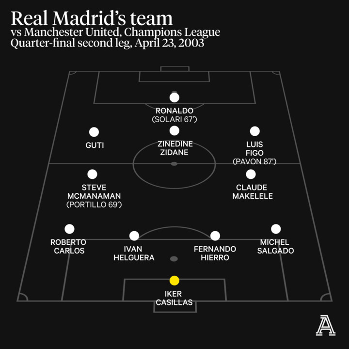 His fourth and final year was a struggle, though. Over time, with the arrivals of Figo, Zidane and Ronaldo, not to mention Claudio Makelele and Flavio Conceicao, the former Liverpool winger had been marginalised. Turning down a move to Inter Milan had irked the Madrid hierarchy and an Achilles tendon injury made things worse. By the time the second leg against United came around, he had started just three league games all season and one in the Champions League. He hadn't played at all for two months.