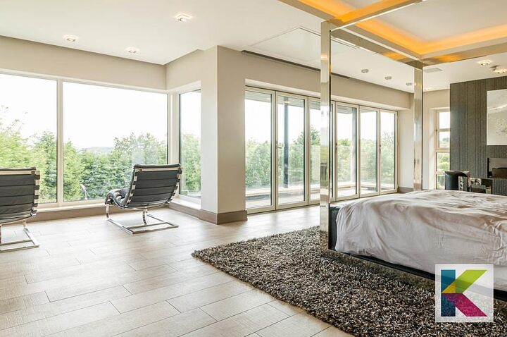As you make your way up the mansion level by level, scenic views of the woodland area fill the floor-to-ceiling windows around the outer edge, making sure each room is brightly lit with natural light.
