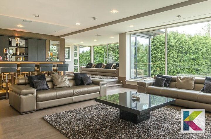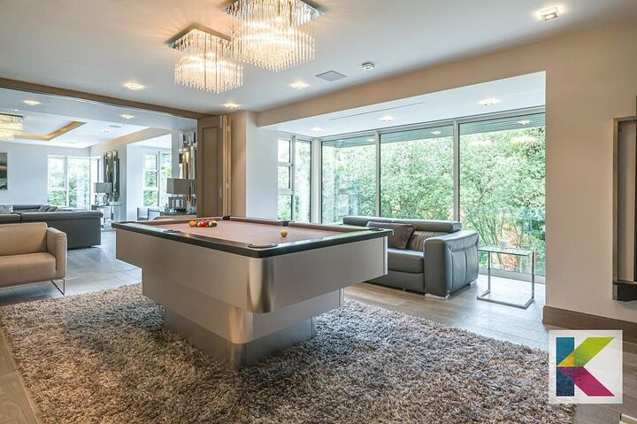 Nestled inside a gated parkland area, the plush seven-bedroom pad boasts six bathrooms and reception rooms across three floors, while entertainment is not hard to come by.