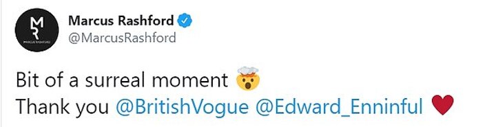 The clearly-humbled 22-year-old shared the 'surreal' photo with his social media followers - but has rightly earned plaudits after leveraging the government to perform a sensational U-turn on their free school meals policy.
